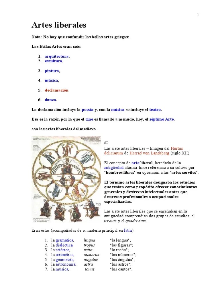 Las siete artes liberales encontraron contrapartes en las siete artes mecánicas; Las siete artes liberales que se. Die bezeichnung bezieht sich auf die hier gelehrten fächer, die „sieben freien künste" (septem artes liberales). 04.08.2009 · en la época antigua se distinguía entre las artes liberales, que sirven al hombre libre para encontrar la ciencia y el conocimiento, y las, que sirven para ganar su sustento y, por lo tanto, sólo tienen un fin económico. El término artes liberales designaba los estudios que tenían como propósito ofrecer conocimientos generales y destrezas intelectuales antes que destrezas profesionales u ocupacionales especializadas. Durante la edad media se dividían las ciencias en dos partes designadas con los nombres de trivium, y quadrivium.